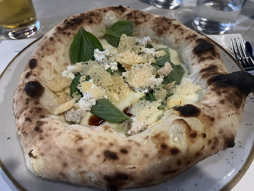 Read moreNel complesso non mi è piaciuta, non tornerei . Allora l’edificio è curato, pulito nulla da dire ma non puoi dare un tavolino da una persona a tre ; sfruttamento dello spazio forsennato, non si respira tavoli attaccati l’uno all’altro, non hai privacy ; ora fanno tutti così e pazienza però lo faccio presente . Secondo punto passiamo alla pizza ; allora buona, salsa di pomodoro ottima, impasto digeribile e la pizza è buona lo riconosco . Punto tre si passa ai prezzi ; ora si può raccontare la ricerca degli ingredienti questi quell’altro mille punti ma non puoi mettere prezzi del genere . Per mangiare una pizza e bere una coca cola senza dolce non si possono spendere più di 20 euro, non è giusto . La replica ormai di tutti è che uno è libero di restare a casa se vuole e che nel libero mercato si fa così, vuoi la pizza paghi quello che dico io punto ! Si il mondo gira così ma non lo trovo giusto perché farina acqua un po’ di mozzarella e pomodoro non puoi chiedere le cifre che chiedete ora ; e con il coperto che imponete sarebbe inoltre gradito un grissino . Molto male per me, questione chiusa...