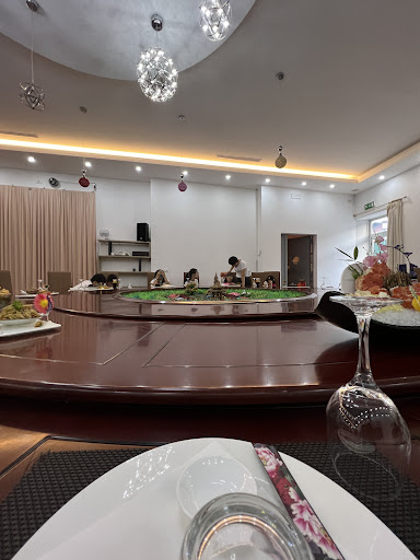 Read moreEntriamo dalla porta automatica e subito ci si presenta davanti una vasca con delle aragoste ed astici vivi, il che mi fa sperare bene, magari in una cucina un po' curata...invece... A parte il luogo dove è situato il ristorante, imboscato a dir poco, il lato positivo è che c'è parcheggio e questo è una nota positiva. Sulla destra c'è del pesce in mostra poi a seguire un bancone frigo grande e spoglio, poca roba in esposizione e tutta avvolta nella pellicola trasparente, non un bel vedere. Il locale è carino, moderno anche se le sedie ricoperte sanno di matrimonio degli anni '90. Il tavolo dove ci siamo seduti era appiccicoso, non pulito bene. Il cibo che abbiamo ordinato non era unto e questo è un bene. Il riso nella media anche se avevo ordinato misto mare e mi è arrivato con anche del wurstel dentro. I ravioli di gamberi al vapore scadenti, pasta troppo grossa, ne ho mangiato solo uno. Spaghetti di riso saltati con gamberi e verdure avevano 4 gamberetti e solo i germogli come verdura. I calamari fritti...beh una scelta infelice, come pure il caffè, da evitare. Il pollo al bambù e funghi discreto, si fa mangiare. Ho speso circa 10 euro in più della media per i ristoranti cinesi. Cmq ho trovato di peggio. Voto 3...