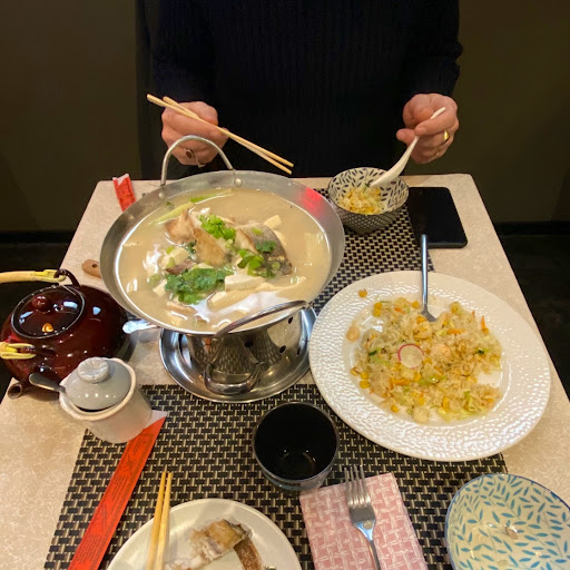 we ate both here and at Ru Yi and the food here is far far far better. the prawn fried rice is a masterpiece, very close to din tai fung level in terms of flavor in the oil, the wok hei, the separation of each grain, the size of shrimp, the size of the egg pieces. the corn is a weird but interesting addition. yes i am very particular about my fried rice, but details matter. it shows there’s a good chef in the kitchen who cares about the food they are making. the chili oil is super legit. the fish soup is made with the entire fish including the head which is essential in delivering full flavor. served properly in one of those pots with flame at the bottom, keeping it warm and making it more delicious towards the end. all signs of a great chinese restaurant.
