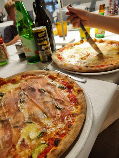 Ristorante pizzeria situato a pochi passi dopo la Floridea di Via Gardesana. Sono stata io e la mia famiglia per un totale di 4 persone il giorno dell'Epifania avendo prenotato telefonicamente circa una ventina di minuti prima più o meno alle 13.00. Arrivati in loco abbiamo trovato un unico posto libero per la macchina, situato difronte al locale. Entrati ci accoglie un cameriere in maniche corte come se neanche fossimo in pieno agosto, riferendo il nostro cognome nel elenco non lo trovava nonostante avessimo telefonato poco prima. Ci dirige verso una sala enorme, affollata dandoci un tavolo a ridosso di un altro tavolo con una distanza di circa 10 cm. Praticamente eravamo parenti con l'altro tavolo. Cambio di cameriere e veniamo serviti da una cameriera dall'aspetto di una certa età, antipatica e con una certa fretta nell'eseguire il suo dovere. Ordiniamo due bottiglie d'acqua, ¼ di vino bianco, un'antipasto con stracciatella, prosciutto San Daniele e gnocco fritto, due risotti con tartufo nero e funghi porcini, una pizza ai würstel e una maccheroncini con speck e monte veronese. Veniamo serviti nell'arco di 20 minuti più o meno. I piatti erano ben serviti e abbondanti, nel frattempo ordiniamo ¼ di sangria, i tavoli iniziavano verso le 14.00 a liberarsi. Eravamo intenzionati a prendere un dolce come nostra abitudine, ma nel momento che ci hanno consegnato il menù dei dolci abbiamo preferito non prendere niente perché risultavano datati. Ordiniamo due caffè. Nel frattempo la cameriera simpaticona di turno aveva fretta di portare via la pizza, nonostante la stesse mangiando un bambino di 9 anni facendo notare più volte la seccatura nel non poter portarla via. Un punto sulla toilette con turca e un servizio per i diversamente abili. Pulizia all'interno standard. A fine pranzo posso dire che nonostante il pieno del locale andrebbe un attimino rivisitato: a partire dall'ambiente perché è carino vedere i vari personaggi cinematografici rivisitati in figures e quadri, ma andrebbero rimordenizzati a partire dai tavoli, le sedie, i tendaggi, rivedere la distanza dei tavoli centrali perché è inaccettabile che mentre si magia si sente l'altro tavolo parlare e addirittura sentire odore di ascelle per quanto erano vicini i due tavoli. Rivedere l'abbigliamento dei camerieri/ cameriere perché è inamessibile vedere più camerieri con addosso vestiario di vario genere per quanto sia ristorante pizzeria. Soprattutto l'educazione dei camerieri. Alla fine abbiamo speso €86,00 consiglio per una pizzata con parenti ma non...