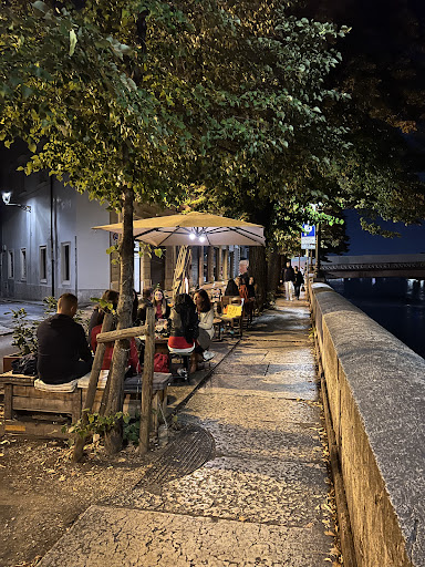 Il locale e ben posizionato in centro a Verona nella zona del Lungadige di Re Teodorico con una bella visuale sulla Torre dei Lamberti, il locale ben arredato con gusto offre entrando un certo calore . È presente una programmazione serale nei weekend di musica live ed altri intrattenimenti. La scelta delle bevande e dei cibi fast varia ed assortita. Ho trovato il servizio bar non all'altezza della situazione con i drinks in due casi sotto al livello medio che mi aspettavo conoscendo la storica fama del locale ed inoltre il barman non certo si faceva notare per simpatia ed affabilità completa assenza di stuzzichini, appetizers, patatine o quant'altro se non a richiesta. Inoltre non capisco la modalità del pagamento a 10 euro con consumazione obbligatoria (che inizia già da orario aperitivo quando la musica live non è presente) portando il listino delle cibarie da un notevole assortimento a due uniche possibilità, ed alzando il prezzo minimo anche della minima consumazione. Buona la fonica durante il live, esibizione molta buona della band rock '50' 60 presente, anche se il pubblico veronese, come al solito, non ha avuto la partecipazione degna di nota ed al altezza del coinvolgimento richiesto dall'impegno della band. Tutto sommato a parte il live ci sono molte cose da rivedere da parte dei gestori dal mio personale punto di vista.