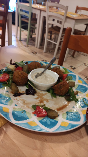 Abbiamo poi proseguito con una porzione di falafel, polpette di verdure fresche servite con la salsa tarator. I falafel erano croccanti fuori e morbidi dentro, con un sapore intenso e speziato. La salsa tarator era fresca e cremosa, il complemento perfetto per i falafel.
