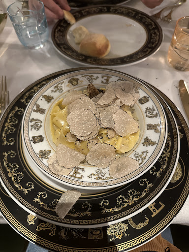 Read moreMy boyfriend and I went here on a recommendation from a colleague. Honestly did not disappoint. I had the truffle pappardelle and my boyfriend the risotto. Both were fantastic and the best of each dish weâd ever tried â and my boyfriend is an avid foodie. As mentioned before, the truffle pasta not only comes with truffle in the sauce and some on top, but the waiter came with a Louis Vuitton box full of truffle and grated fresh truffle on top. We didnât realize that the plates were Versace until we got home and looked at other reviews, but the water glasses are also Dior â not that it matters or makes a difference. But for the presentation and food quality we found the restaurant to be totally fair, and unpretentious. We also received a fresh bread basket, a small sample of mashed potatoes with bacon, and a small dessert tray at the end of the meal. Overall would recommend. The presentation has nothing to do with the quality of the food so if youâre turned off by the gaudy approach, still give this restaurant a chance. Our waiter was also so kind and attentive!...