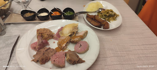 Il piatto presentato non lascia un centimetro di ceramica libero, dicendola lunga sull'abbondanza della portata. Ma il bello è proprio che per chi ha "la famona", è possibile fare senza problemi un bel secondo giro, magari provando altri tagli o i propri preferiti del carrello. In accompagno, la salsina verde, il cren, i peperoni...