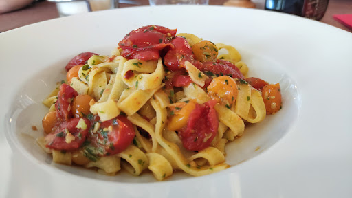 Fatte le nostre ordinazioni prima che potessi scattare una foto al mio piatto, le altre persone al tavolo avevano già iniziato a mangiare e non riuscivano a smettere di esclamare "Ammazza che bono!" ad ogni boccone. Avevano scelto le pappardelle al ragù di abbacchio con pomodorini freschi, mentre io ho optato per la pasta al pesto e pomodorini: una delizia assoluta!