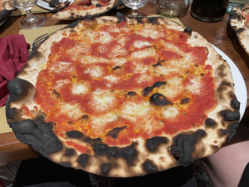 Come premessa determinante bisogna dire che era sabato sera, eravamo riusciti a prenotare all'ultimo momento per il secondo turno Ed anzi che era previsto un secondo turno...molto disponibili sia al telefono che di persona, mi è sembrata gente in gamba che lavora sodo facendo non pochi sacrifici.... All'apparenza è un locale molto rustico e soprattutto molto affollato e questi sembrano in realtà essere Ottimi presupposti tranne il fatto che la folla ammassata in poco spazio, anche di gente che aspettava,creava molto caos.... le pizze ci sono sembrate molto care anche i gusti più semplici erano leggermente sopra la media ma abbiamo sperato che questi eventuali aumenti garantissero comunque il tanto conclamato livello qualitativo. Dato che si presupponeva una certa attesa Abbiamo ordinato anche delle bruschette pur rimanendo stupiti che la bruschetta mista che arrivava ai €5 scarsi, fosse costituita in realtà da soltanto due fette di pane condite in modo fin troppo casareccio nel senso che non erano nulla di che per il prezzo... La pizza è arrivata abbastanza presto in realtà ma era mezza carbonizzata nei Bordi... Ok che ad una certa ora i forni saranno stati bollenti ma potevano farla uscire prima sinceramente... l'impasto era molto basso e leggermente gommoso e la mozzarella non era poi così tanta tale che si era assorbita come ad osmosi, nella pasta...ho chiesto la pizza al limone, che sfiorava i 7 euro...mozzarella e scorza di limone, a cui ho fatto aggiungere della cicoria che era ripassata e mi è sembrata molto appetitosa anche se si trattava di ciuffetti sparsi... il prezzo della birra non era poi così alto ma nemmeno il top rispetto a come si poteva bere una volta alla spina. Tuttavia il totale non ci è sembrato così superiore alla media soprattutto di questi tempi di Generali vergognose speculazioni. Diciamo che antipasto, pizza, birra e caffè siamo sulle 20 a testa. È un locale molto rinomato, c'è gente che ci viene anche dal capoluogo di provincia Tuttavia non conoscendo le sue caratteristiche precedenti a queste ultime generalizzate assurde crisi non mi rendo conto da cosa possa venire tutta questa fama....mi dissero che fosse molto economico e buono ma secondo me non erano informazioni affatto aggiornate. Nella media direi... ma a pochi km "la valle del burano" alle stesse cifre offre mediamente ben altra qualità a mio...