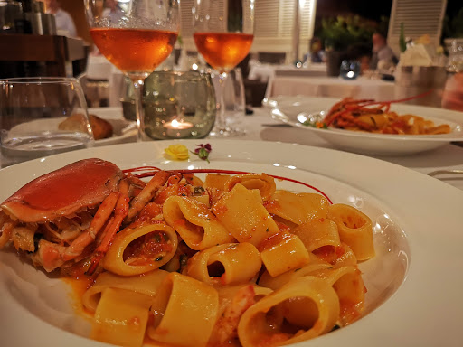 Poi finalmente ordiniamo. Decidiamo di prende 4 antipasti e 4 primi. Gli antipasti erano buoni (crudo di mare e polpo alla griglia). Invece sui primi hanno pensato bene di prenderci in giro. Ordiniamo due spaghetti con ricci di mare e vongole e due paccheri alla famosa PESCATRICE ...che pescatrice non era ! Dopo avere assaggiato iniziano a sorgere seri dubbi che quelle anzichè essere una pescatrice fosse pesce spada. Pertanto paleso la cosa al cameriere che, a suo dire essendo lui anche un pescatore, se avesse potuto vedere il piatto ci avrebbe saputo dire se ci stavamo sbagliando o meno. Io gli chiedo comunque di andare a chiedere in cucina. Il cameriere ritorna con le scusa dello chef e confermando che i paccheri non erano con la pescatrice ma con il pesce spada. Quanto meno hanno avuto l onestà di ammettere della tentata presa in giro ma la cosa è più grave di una semplice presa in giro ! E se qualcuno di noi fosse stato allergico al pesce spada?