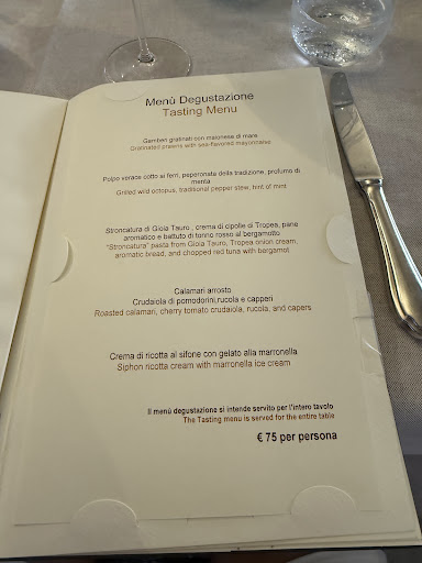 The food? Every course lived up to the Michelin recognition. From beautifully balanced entrees to standout mains, each dish was a celebration of local Calabrian ingredients with a sophisticated touch. The seafood was particularly exceptional—fresh, delicate, and expertly prepared. We couldn’t resist trying the desserts, and they didn’t disappoint—elegant, light, and full of flavor.