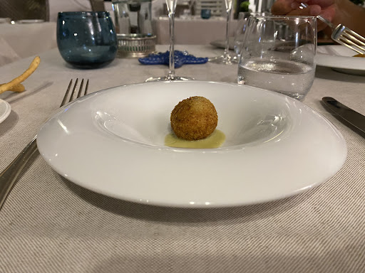 Il ristorante si presenta molto elegante con con addirittura un pianista che suona un pianoforte a coda. Il Maitre ci fa accomodare in una saletta molto buia (passare dal giorno alla notte è stato un attimo). A questo punto inizia la maratona... Tempi di attesa lunghissimi, quasi un'ora tra una portata e l'altra !