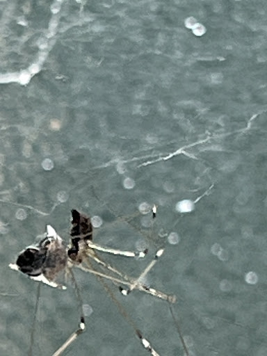 È da anni che non assistevo a uno spettacolo simile: fauna autoctona in piena attività predatoria. Grassi mosconi si fanno un aperitivo di moschine più piccole, che a loro volta vengono gentilmente offerte come portata principale a ragni ben più organizzati.