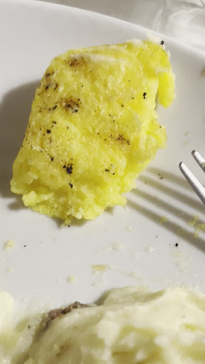 The menu was a challenge if you don't speak italian - the way it was presented didn't work for picture translate. Staff tried their best to help though. We had pea pasta which they happily split for us and the pasta was tasty but I think the peas were dried - we had fresh other places - good stock flavour though. For main we had steak and pork cooked in milk - which was the highlight. Both came with fried polenta, which I liked though the wife found too dense. We also ordered some potatoes, which were tasty. Aftrigato was good and wife's baba heavy on the rum. There were lots of doggie certificates and pictures which we loved and owner showed us pics...