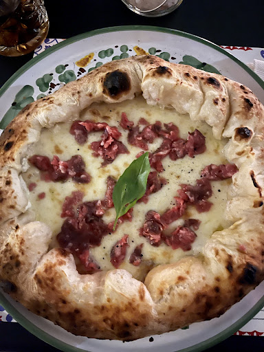 Read moreIeri sera, prima di andare a vedere uno spettacolo a teatro, ci siamo fermati per caso in questa pizzeria in centro. Ad accoglierci un ragazzo educato e simpatico che con in sorriso a 832 denti, nonostante non avessimo prenotato ed era sabato, ci ha trovato comunque una sistemazione. L'unico neo è proprio il posto dove abbiamo mangiato, vicino la porta d'ingresso che la gente continuava ad aprire per entrare ed uscire. Se poi ci mettete che fuori la temperatura era di 0 gradi fredda, con vento e c'erano i rider delle consegne a domicilio che continuavano a tenere la porta aperta, abbiamo preso un po' di freddo. Consiglio al titolare un plexiglas lungo per dividere l'ingresso e far accomodare i clienti senza ibernarli. Chiusa questa piccola parentesi tutto il resto è solo che in salita. Personale super gentile, veloce, educato e simpatico. La pizza? Una vera delizia. Sicuramente napoletana, l'impasto altamente digeribile, sapore incredibile e qualità dei prodotti che hanno reso la pizza davvero una cosa super deliziosa. Se non fosse che avevamo erette ne avrei mangiata un'altra. Abbiamo preso per finire 2 tiramisù sicuramente fatti in casa, la qualità si sentiva e la porzione era molto generosa rispetto a quello che si trova altrove. Che dire, un posto in cui torneremo volentieri e anche se non siamo di Vicenza (mia moglie però lavora lì vicino) ci faremo un salto, magari anche in pausa pranzo visto che è aperto....