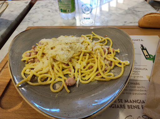 Read moreLa qualitá del cibo è anche buona ma i prezzi sono esagerati ( 12,50 € per un insalata di polpo patate e pomodori giá pronta nel frigo vicino alla cassa! ) e le porzioni per niente abbondanti. Servizio con tempi lunghi causa poco personale, basta poca gente per creare una confusione totale sia alla cassa che nella preparazione dei piatti. La cassiera fa i conti in cassa, smista i piatti ai clienti e segue il banco bar, solo 3 ragazze alla domenica a pranzo sono insufficienti fra banco e cucina, devono sbattersi a destra e sinistra. 23,80 € per un primo, un piattino misero di misto polpo patate e pomodori, 1 pezzo di pane, acqua in bottiglia di plastica (€1,20!) e caffè mi sembrano troppi! Un consiglio: assumete personale e aumentate le porzioni, di conseguenza si migliorerá il servizio e i clienti saranno sicuramente piú soddisfatti. Altrimenti non ci...