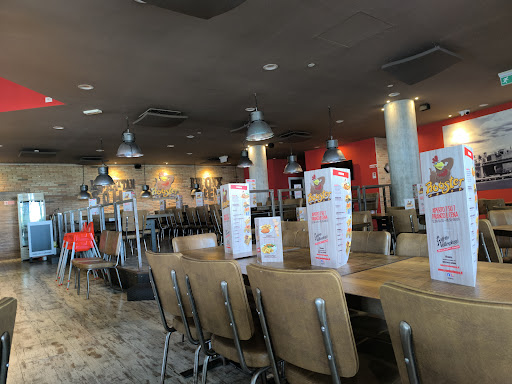 Ristorante, in stile americano, un tempo famoso solo per il pollo. Ora invece hanno variato il menù. Qualitativamente superiore, ai suoi concorrenti, Old Wild West e Roadhouse, con prezzi molto concorrenziali. Ambiente curato, con molti posti a sedere e soprattutto pulito, con qualche arredo non proprio recentissimo, ma comunque in linea con lo stile del locale. Personale gentile e cortese, poco formale, che tende a farti sentire come a casa. Menù nuovi appena rifatti, con delle bellissime aggiunte. Ordinato un filetto di scottona ed un' Hamburger Big Bang. Il filetto era a giusta cottura (richiesta cottura media), ben saporito e soprattutto tenero, un pochino tiepido, ma nulla di grave. L'hamburger Big Bang, un bestione di 380 grammi (solo la carne), più tutto il resto, l'hanno reso un piatto buono ma impegnativo, con aggiunte le patatine incluse automaticamente nel menù. Mangiandolo, ho riscontrato una perplessità, tipo una salsa appena accennata, acre ma buona sotto la fetta alta del pane (sapeva secondo me di cetriolo, poteva essere un burro aromatizzato al cetriolo, spesso usato nella cucina americana per Hamburger cotti alla griglia e poi messi in mezzo al pane). Non critico la qualità del prodotto, perché è innegabilmente buono, anzi forse uno dei migliori che ho mangiato fino ad oggi, in questa categoria di ristoranti, semplicemente più accortezza negli ingredienti scritti a menù, dato che non era riportata da nessuna parte (infatti basandomi su ciò che c'era a menù ho fatto togliere delle cose, se fosse stata scritta, avrei chiesto di non metterla). Giustissimo riportare le allergie, se presenti al cameriere, ma anche la trasparenza nei menù non dovrebbe mancare. Luogo consigliatissimo dove mangiare, sicuramente andrò a trovare i loro "cugini" a Torri di Quartesolo, per poi trarre le mie...