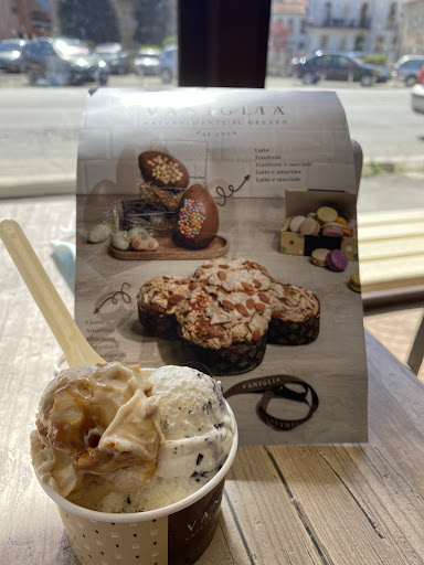 Read moreBeh,non è che ci stai abbastanza per dare un giudizio reale sull'ambiente,nel senso qui posso dire la mia ma non sulle persone che lavorano da vaniglia.Attenti a non fraintendermi.Il locale è simpatico,ben illuminato e ha molte cosette per i bambini,gli esseri senzienti più importanti perché non hanno malizia, dicono le cose come le vedono.Quindi una gelateria dovrebbe appunto pensare prima a loro e poi a noi adulti,che abbiamo la capacità di adattarci,se un gusto non c'è ti dispiace ma cambia gusto.Un bambino la prende più sul personale(si ok dipende anche dall'età e anche da altri fattori assolutamente fuori dal tema)Mi sa che sto personalizzando troppo questa recensione.Allora io amo Vaniglia perché chi ci lavora è quasi sempre sorridente,io amo Vaniglia perché chi sta dietro le quinte crea dei connubi di gelato fuori dell'immaginario,e quelli più semplici sono molto buoni.Cito quello al fico,ma ha altro dentro oltre al fico.Io amo vaniglia perché è comodo per parcheggiare ed ha il plateatico,molto importante soprattutto d'estate.Ecco perché ho dato il massimo...