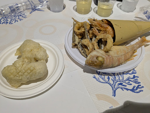 Read moreAmazing local fish place for "frittura" (fried fish) and linguine allo scoglio. Menu is very limited (a good thing!) and relies on small batches of local produce cooked there and then. There's no service table and cutlery is all plastic, but staff is helfpul, and if you fancy a casual fish dinner, place is perfect. All in the open by the side of the harbour....