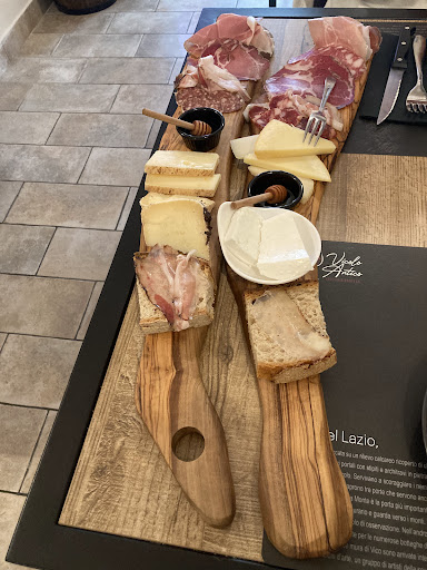 L' Enotaglieria Vicolo Antico si trova in una posizione suggestiva, al termine di un vicolo che conduce alla piazza principale del paese, Vico nel Lazio. L’ambiente, di dimensioni contenute, si distingue per ordine e pulizia, elementi che contribuiscono a rendere l’esperienza piacevole e curata sotto ogni aspetto. Vista la limitata capienza, soprattutto nel periodo estivo, è vivamente consigliata la prenotazione. La proposta gastronomica, volutamente essenziale, privilegia la qualità alla quantità: pochi piatti, ma preparati con ingredienti selezionati e attenzione alla presentazione. Degni di nota gli antipasti e le portate di carne, ben equilibrati e dal gusto autentico. La carta dei vini è interessante e ben strutturata, con etichette in grado di soddisfare diverse preferenze e di valorizzare adeguatamente le pietanze proposte. Il servizio si contraddistingue per la professionalità e l’affabilità del personale, sempre attento e disponibile, capace di creare un clima accogliente senza mai risultare invadente. Un indirizzo da consigliare senza esitazioni a chi desideri coniugare qualità gastronomica, cura del dettaglio e...