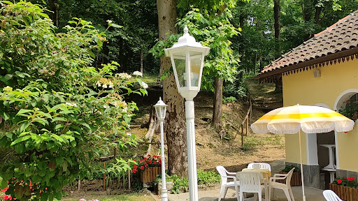 Locale assai particolare a partire dal luogo dove si trova, ad una sorgente naturale sia di tipo solforosa che minerale, liberamente accessibili; che ha visto un antica fondazione nel 19imo secolo e la presenza di Carlo Emanuele I° in occasione dell' inaugurazione di una statua al santuario di Vicoforte. L' ambientazione é stupenda, un piccolo parco immerso nel verde e nel silenzio più assoluto assieme a una bella musica ambientale b-side; il servizio é impeccabile e di livello. L' interno del locale non mi ha molto entusiasmato perchè la trovo "pesante" e assai troppo differente rispetto al circostante ambiente che richiama tranquillità. Abbiamo preso due gelati ed il costo era al di sopra della media mentre il gusto l' ho trovato troppo dolce al punto che tendeva a coprire la crema dell' affogato allo zabaione; era anche troppo freddo risultando un poco ghiacciato. Il servizio e la competenza del personale presente è di livello elevato e quindi con un attenzione al cliente non male.