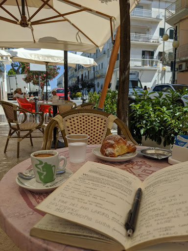 Io amo leggere nei bar, penso sia la mia cosa preferita al mondo. E da qualche anno a questa parte se leggi un libro in un bar del Gargano ad Agosto alcuni proprietari ti trattano come un ladro che gli sta rubando dei soldi. Qui invece non solo sono stato trattato bene, ma addirittura i loro cornetti sono tra i più buoni di Vieste. La cameriera che ha servito nel periodo di Agosto era poi gentile, sorridente, e per niente provinciale. Ci tornavo appena potevo. Il mio bar preferito...