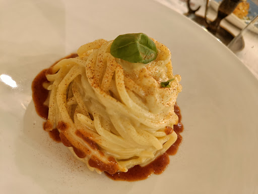 Read moreWe visited this restaurant on a Sunday evening. When we arrived there at 7 pm the restaurant was empty. The menu in was delivered via a qr code, wifi was provided by the restaurant. We ordered a glass of wine each and two courses. First some pasta and then some pork with smashed potatoes. The food is a little bit difficult to rate for me. The first course, the pasta was very good. Then came the second course. This course was quite cold and the pork meat was quite hard since it was cold. I told this to the waitress, they took the food and heated it up in the microwave. I got the dish back 2 minutes later, this time it was warm. It tasted quite good now, however it was not freshly prepared which I would expect from a nice restaurant. This is why I can't rate the food any higher unfortunately. All in all...
