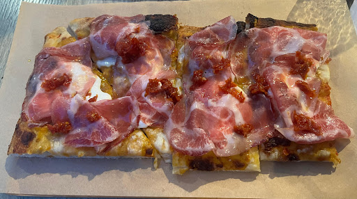 Se cercate la vera eccellenza della pizza in teglia, fermatevi da Teglie di Puglia. Samantha, la proprietaria, è una maestra dell'impasto: leggero, fragrante, fatto a regola d'arte. Sentirete la cura e la passione in ogni trancio, un'esplosione di gusto ad ogni morso, grazie a ingredienti di qualità altissima, selezionati con cura e passione. Il servizio è rapido, niente attese infinite, solo sorrisi e cortesia. Il locale è pulito, ordinato e curato nei minimi dettagli, trasmette subito un senso di accoglienza e professionalità.