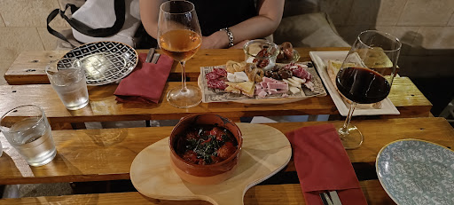 La fame e la curiosità ci hanno guidato verso questo locale Devo dire che è stata una piacevole scoperta Di giorno fanno vendita di prodotti locali e di sera... si mangia! Siamo stati accolti al tavolo con un pane caldo e sopra di esso un assaggio del loro olio di oliva davvero buono A seguire abbiamo preso polpette di melanzane servite in una terrina di terra cotta e un tagliere piccolo con salumi, formaggi, olive, stracciatella con pomodoro secco sopra, taralli al finocchietto e lampascione sott'olio, accompagnando il tutto da due calici di vino Tutti prodotti erano locali e tutti davvero molto buoni