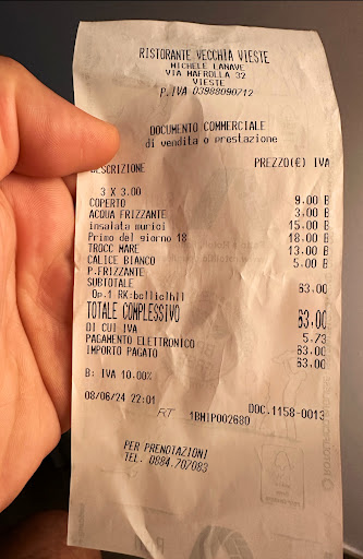 Un antipasto del giorno (insalata di lumachine) buono in alcune però era sfuggito togliere la parte anteriore pericoloso per i denti. 2 primi (uno del giorno + troccoli ai frutti di mare) un calice di vino ed una bottiglia di acqua. Il primo del giorno spaghetti con i ricci di mare che sono di importazione perché fino al 5 maggio 2026 non si possono più pescare ricci di mare in tutta la Puglia ed il gusto ne ha risentito, 18€ non ne valgono, ho sbagliato la scelta perché mi sono fatto “infinocchiare” dal cameriere che ha saputo vendere il piatto che comunque in un ristorante del genere non dovrebbe nemmeno entrare… ma ho capito il perché dei ricci di importazione anche perché i troccoli ai frutti di mare, il pesce al suo interno, non era tutto pescato locale. La location è spettacolare la cucina non all’altezza. Abbiamo deciso di non prendere il secondo per scelta. Vivo e vengo da una città di mare molto turistica e ci sono anche nella mia Città certi ristoranti ma bisogna capire che non siamo tutti turisti… l’Italiano in Italia non è mai turista… e comunque neanche il turista deve essere “infinocchiato”. Poi al conto non puoi caricare 3 coperti quando siamo una coppia… si era accorto del costo dell’antipasto errato e lo ha sistemato a suo favore e non si era accorto di aver caricato tre coperti… mi fa pensare. Mbè come si dice pensar male si fa peccato ma spesso si azzecca … giusto per tornare sul turismo che passa una volta e forse non torna più! Totale costo della cena 1 antipasto 2 primi un calice di vino ed una bottiglia di acqua 60€ li avrei pagati più volentieri se mi fossi alzato gratificato da quello che abbiamo mangiato.
