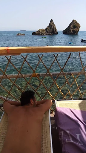 Read moreVietri sul mare, a luglio, di domenica... Già questo dovrebbe farti capire che se trovi posto e l'acqua pulita, sei fortunato. Sono venuto venerdì e sono ritornato domenica, ho trovato due volte il posto in prima fila, affacciato sul mare... Lettino per persona più ombrellone 40€, che considerando il giorno ed il periodo, sono buoni rispetto ad altri lidi. Essendo sul mare, scendi comodamente in acqua da una scaletta e puoi nuotare tranquillamente sotto ai due faraglioni di Capri in miniatura. La cosa che adoro è il fatto di avere la doccia gratis, perché al mare, se non ho la possibilità di farla ogni volta che esco dall'acqua, vado in crisi, qui ce ne sono due e sono gratis. Un'altra cosa che adoro è la musica in sottofondo, latino americana per la maggiore. Il bar ristorante ha ottimi drink ed anche il panino era buono. I prezzi di bevande e cibo sono però esagerati, ma posso capire perché in ogni caso, ingresso lettino ed ombrellone, considerando il posto ed il costo, sono quasi regalati quindi giustamente si rifanno sul cibo. In questo modo però, chi vuole fare soltanto il bagno, può ritenersi fortunato, perché può farlo in un posto esclusivo. La clientela è molto giovane, anche quelli grandicelli come me, si divertono e trascorrono un paio d'ore in allegria ed in totale relax. Ogni tanto ci viene anche qualche vip, oggi infatti sono stato fortunato perché ho trovato il calciatore Emanuele CALAIÓ che ho sempre amato quando giocava nel Napoli. Sono amante di Vietri, perché si raggiunge facilmente, ma preferivo andare sempre nella spiaggia libera più avanti, ma da quando hanno creato il molo per la partenza dei traghetti per la costa amalfitana, è diventato uno schifo, perché l'acqua è sempre sporca. Sono quindi contento di aver trovato questo lido, perché non viene minimamente attraverso da questi traghetti e mi permettono di godere del mare di Vietri in tutta...