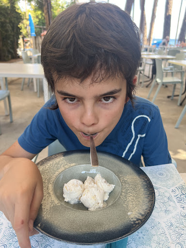 Around 20 euros for average fish (there wasn’t much more than tuna and sword fish steaks in the menu) with below average salad. Looking at the other ratings and pictures, we probably were unlucky today. Apparently, the chef was on a break (as the waiter kindly explained). The meat and cheese table had about 12 small slices. The oven potatoes is actually a small potato (around 8 small pieces). I hope our pilot is not in a break when we are flying back home, or the surgeons are not in a break if we get poisoned while the chef was on a break. In an effort to be positive, I would mention the nice view over the beach (although we were offered a table in an area away from the seaside, so I can’t say much about it either). Remember that you must climb 200 steps after you have paid for your bill (I fully understand the chef’s breaks). Parking is tricky. If you can, go somewhere else. For dessert there was only one “exciting” choice of fruit ice cream...