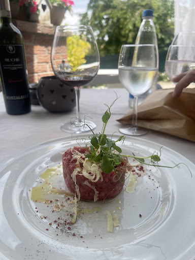 Una stella solo per la vista perché per il servizio e il cibo dovrei dare - 10. Io e il mio fidanzato abbiamo preso il menù tradizionale a 30 euro a testa con 3 degustazioni di antipasti, 2 primi, un secondo e il dolce. Partiamo dagli antipasti 4 fette di numero (messe dal cameriere nel piatto) di affettati, seconda degustazione mezza porzione di Tartare di carne messa sempre dal cameriere nello stesso piatto sporco degli affettati e il gusto di quella Tartare era disgustoso, per finire con il terzo antipasto sempre nello stesso piatto degli altri due e sempre messo nel piatto dal cameriere un pezzetto di peperone con la bagnacalda sembrava buono peccato che non l'ho manco assaggiato perché mi è saltata la cavalletta che era presente nella sala nel piatto sopra il peperone. Potevo accettare una cosa del genere se fossimo stati nel giardino in mezzo al verde però nella sala al primo piano no. Dopo questa avventura arriva il cameriere e mi chiede se poteva togliere il piatto non toccato al che io rispondo gentilmente :" si non ho mangiato perché una cavalletta mi è saltata dritta sul cibo e non mi sembrava il caso di continuare a mangiare" la risposta del cameriere è stata "Ah." prende il piatto e se ne va. Vabbè pazienza. Arrivano i due primi nello stesso piatto i gnocchi al formaggio che erano accettabili e li agnolotti che non consiglierei a nessuno di andare a mangiare. Passati i primi arriva il secondo che io non amante della carne al sangue non ho mangiato e anche se al mio fidanzato piace, neanche lui l'ha mangiata tutta perché non era del suo gradimento. La cosa che si è salta di questa serata è l'acqua e il dolce il bonet al cioccolato. Non ci tornerei per niente al mondo anche perché nel Monferrato ci sono posti molto migliori. E per concludere il mio fidanzato è stato male...