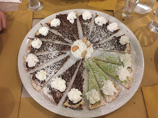 La pizza al cioccolato non era un granchÊ, accompagnata con panna calda (non da frigo) che si è sciolta immediatamente...