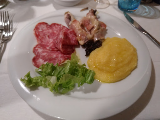 Read moreOrdinato 2 antipasti, un primo e un contorno + acqua, ¼ di refosco sfuso e caffè, pagato € 49. Purtroppo non avendo molto appetito, non abbiamo preso la carne alla griglia (che consigliano). La qualità del cibo non mi è rimasta impressa, diciamo nella media di una trattoria veneta senza infamia e senza lode. Purtroppo non mi è piaciuto il servizio: troppo veloci a toglierti il piatto (finché masticavi l'ultimo boccone) e zero pausa tra una portata e l'altra. Per un pranzo di lavoro veloce ci sta, ma la sera (non tardi, infrasettimanale), se vedi che due stanno chiacchierando con calma, la cosa infastidisce. Senza questo aspetto negativo, sarebbero...