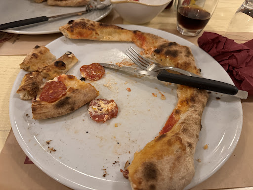 Read morePizzeria di tipo "self service" in cui il servizio viene delegato al cliente con piatti posate e bicchieri di plastica e tovagliato di carta in un ambiente minimale e informale. Il locale è pulito, non grandissimo e i molti tavoli sono un po' vicini tra loro ma questo non risulta particolarmente fastidioso data la disposizione sapiente degli spazi. Il vero punto forte è la pizza. Impasto leggero, eccellente con molte scelte particolari tra cui il senza glutine; condimenti dai più classici ai più particolari, dolci compresi, in quantità abbondante ma non eccessiva e cottura veloce in forno a legna e quindi un po' "affumicata". Prezzi popolari (dai 3 ai 6 euro a pizza, 13 per il metro) In sintesi: pizza fantastica, posto...
