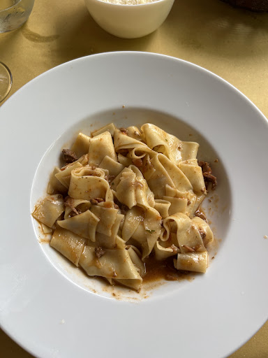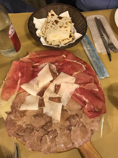 Read moreCibo buono, posto davvero carino, soprattutto l esterno con fiori a vista e glicine fiorito! La pecca è la lentezza nel servizio. Arriviamo alle 20. Purtroppo abbiamo atteso 1 ora per avere l antipasto, arrivato per metà e non avevamo neanche il bere sul tavolo. Abbiamo cortesemente chiesto se ci potessero portare da bere e l antipasto mancante. Abbiamo atteso ancora 20 minuti. 21.20 il cameriere è poi uscito con i nostri secondi piatti che abbiamo "rimandato indietro" (nb. non avevamo ancora iniziato a mangiare l antipasto). 21.30 FINALMENTE arriva tutto l antipasto compreso di bere, molto buoni gli affettati e la piadina che sembra casereccia, nulla da dire, anzi! Ma torniamo a noi. 22.15 siamo ancora in attesa dei piatti ordinati ( un primo ed un secondo) 22.30 arrivano i piatti.. Aggiungo il fatto che ci sia disorganizzazione e i tavoli vengono serviti a random. Gente che arriva 1h dopo ed è giá servita, tu che sei lí da 2h ancora attendi.. Vabbeh. A parte il servizio, il cibo è davvero ottimo e la qualitá uguale! Sono combattuta, perchè ha del potenziale sia come luogo...