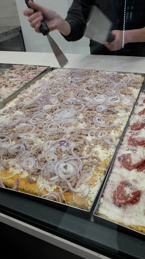 Pizzeria al trancio, per lo più da asporto, lungo il viale di Villafranca di Verona, a pochi passi dal castello. Parallelo al corso principale. La pizza è strepitosa nel suo genere. Impasto soffice con farciture fantasiose, dagli abbinamenti azzeccati e generose. Molte le proposte disponibili sul bancone, affiancate da altrettante in arrivo dalla cucina. Si evince un attenzione all'utilizzo di prodotti tipici e locali, ad esempio verdure e formaggi. Servizio celere, preparazione e uscita in tempo reale. Si possono acquistare i tranci per poi riscaldarlo a casa, o farseli passare al forno pronti da consumare a passeggio. Ambiente per lo più funzionale, concepito per l'asporto, ma gradevole, il banco letteralmente strabordante di teglie farcite è molto invogliante... assolutamente da provare. Parcheggio disponibile lungo il viale. Ha relativamente da poco cambiato sede, dal lato opposto del viale, qualche edificio più vicino al castello, rispetto...