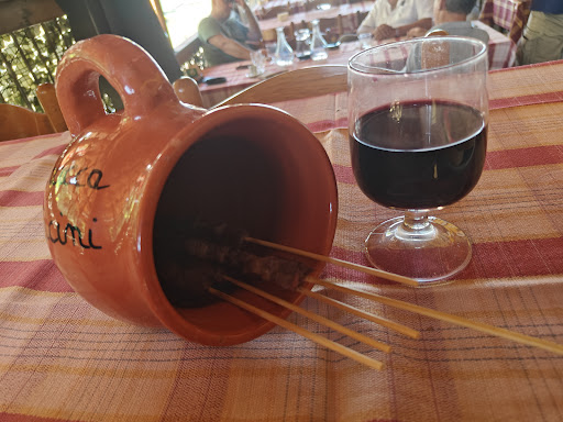 Ero in transito di passaggio su questa strada e, avvicinandosi l'ora del pranzo, mi sono fermato in un agriturismo. Quando hanno visto che ero da solo, hanno trovato delle scuse per non prepararmi da mangiare. Scossa la terra da sotto i sandali, mi sono rimesso in viaggio, e ho notato La Baracca. Attratto sia dal parcheggio (ce n'è in abbondanza) sia dall'ambiente che prometteva cibo tipicamente del luogo, mi sono fermato. E devo dire che non me ne sono pentito. Come antipasto ho preso le pallotte cac'e ove, delle buonissime polpette senza carne, tipiche della cucina abruzzese. A dir la verità, mi era già capitato di mangiarle, ma mai così buone e pregne di sugo: da leccarsi i baffi! Come primo mi è stata consigliata una "chitarrina", ovvero spaghetti alla chitarra con condimento rosso. Devo dire che la porzione abbondante è adeguata a chi, come un tempo, tornava dai campi dopo una mattinata di lavoro; sia nel mio caso sia in quello dei vicini di tavolo nel piatto comunque non è avanzato nulla. Da notare: il piatto servito con un cucchiaio inserito nella pietanza, ovvero uno dei tre modi con cui il Galateo suggeriva di mangiare gli spaghetti. Per concludere, valeva sicuramente la pena trovare ancora uno spazio per gli arrosticini, altro piatto tipico della zona. Anche in questo caso buonissimi, e serviti con un tocco di "classe rurale" in una brocca in ceramica, che dona l'ennesimo tocco di folklore a tutto il pasto. Da bere: un bicchiere dell'immancabile Montepulciano. Congratulazioni a Dante, Ornelia, e figlio (credo) per l'accoglienza, i suggerimenti, e la bontà...