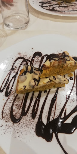 Abbastanza buona la pizza, misura 28/30 cm circa. Un po' piccola per i prezzi in carta. Alcune pizza hanno degli ingredienti molto buoni altre normali. Dolci fatti in casa, la sfogliata col cioccolato alle nocciole molto buona la cake di pere e cioccolato no l'ho trovata un po' asciutta e senza carattere la crema catalana era troppo dolce. Abbiamo accompagnato con una bottiglia di Moscato che abbiamo pagato €16,50