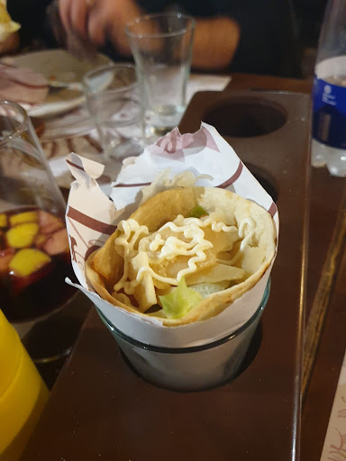 Read moreWOW! Locale scoperto su TripAdvisor e che non abbandoneremo facilmente. Ci siamo accomodati sotto alla tettoia che dà sulla strada appena giunti, ed era Domenica sera. Il locale è accogliente, fresco e piacevolmente rustico. Nonostante le proposte offerte dal cameriere (menù paella, menù panino, menù antipasti, ecc.) abbiamo ordinato a sentimento (vedi foto): -fonduta con salsiccia: gusto leggero e delicato, mentre la salsiccia era molto poca all'interno, ma i crostini erano buoni; -cannolo messicano: delizioso! Cannolo di sfoglia farcito con fagioli, carne, salse, fonduta e patatine fritte. Nonostante il menù indicasse come piatto piccante, si avvertiva appena un pizzico di piccantezza; -panino con hamburger, bacon, provola, crema di noci e noci tritate. Che dire... davvero cicciottoso. Molto condito, pieno di carne e davvero saporito; -crema catalana: buona, ma il TOP sono stati cannolo messicano e il panino. Personale cortese, gentile e simpatico, pronto a soddisfare ogni richiesta dei clienti. Prezzi modici per la qualità delle pietanze. Davvero un ottimo locale per trascorrere una serata in piacevole...