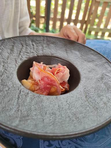 A quel punto, allora, il secondo senso coinvolto è l'udito, perché è possibile sentire subito il contatto con la Natura che rende verde e brillante il verde intorno; il terzo senso è ovviamente quello del gusto, stuzzicato dagli ottimi sapori di una cucina particolare, curata nei dettagli e nella tracciabilità delle materie prime. L'olfatto poi gode per i profumi che ogni piatto emana e il tatto è continuamente stimolato dal piluccare gli ottimi tocchetti di focaccia e pane rigorosamente preparati nella cucina del ristorante. Bello il posto, ottimo il cibo, gentilissima la cameriera! Lo raccomando vivamente con un bel 10 e lode!...