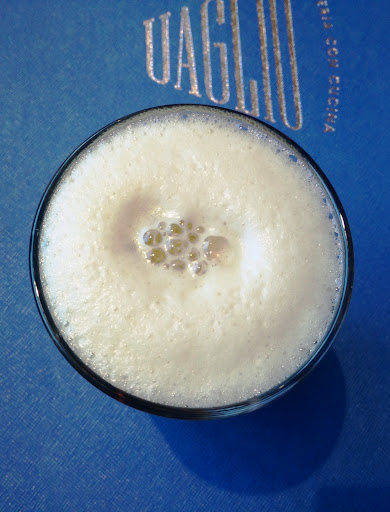 La lista delle pizze di Uagliò (manca la “G” iniziale, ma ai titolari il nome piaceva così) chiarisce subito la filosofia del locale: la proposta di un impasto moderno e adatto alla contemporaneità. Le pizze si presentano con bordo alto e morbido. Un aspetto importante riguarda l’alveolatura, e cioè la quantità e la grandezza dei "buchi" all'interno del cornicione. Questi si formano dopo l'impasto degli ingredienti grazie al riposo, poiché in questo periodo avviene tutta una serie di processi in cui sono complici il lievito, la forza della farina, i tempi di lievitazione, e la temperatura. Così come nella cervogia (in cui il lievito si nutre di zuccheri, e produce alcol e CO2), anche Il lievito presente nell'impasto della pizza si nutre degli zuccheri della farina e produce anidride carbonica. Questo gas con il calore si espande, restando imprigionato nella gabbia glutinica, e creando così delle bolle. L’abilità e la maestria del pizzaiolo che manipola l’impasto sono fondamentali per non rompere la maglia glutinica, e mantenere così il gas all’interno del composto. A tempo debito poi si stenderà l’amalgama sul piano di preparazione e s’infornerà, conferendo all’impasto quell’effetto che ci attendiamo al taglio. È come se la pizza "respirasse" di più, essendo sia più leggera e digeribile sia più gustosa. Volendo però, è possibile chiedere al personale anche di avere una pizza più bassa.