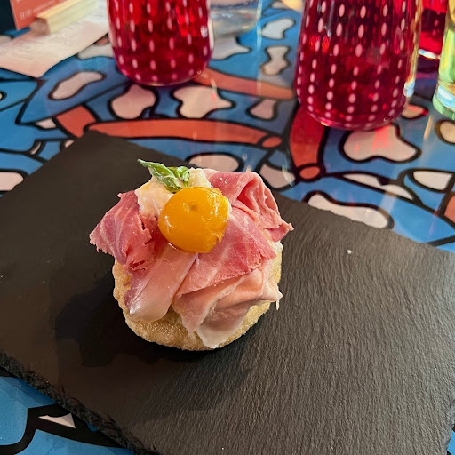 Appena entri nel locale vieni catapultato nel caldo mondo di Napoli. Ci sono detti napoletani sulle pareti, foto antiche, una gigantografia di Pulcinella, una televisione che ti mostra la produzione di elementi essenziali della cucina napoletana (come la coltivazione del pomodoro del Piennolo e la produzione della mozzarella)…lo staff è davvero molto cordiale e ti mette subito a tuo agio, facendoti sentire a casa💖.