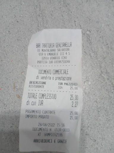 Read moreDopo questa esperienza, ho imparato che occorre sempre leggere le recensioni! Dunque...da dove iniziare... siamo venuti in gita a Vinadio per la prima volta e ci siamo fermati a mangiare pranzo qui perché attratti dal profumo. Purtroppo, però, ha disatteso le aspettative. Il servizio è stato lentissimo. Per non parlare della poca cortesia. Le risposte della cameriera rasentavano l'antipatia. Apperecchiato a metà, su richiesta, dopo che ci è stato servito il pasto, abbiamo avuto le posate. E poi il cibo....il pane decongelato, ancora freddo. La polenta e salsiccia tutto sommato non era male, anche se il sugo era poco saporito... I ragazzi di fianco a noi, una bella comitiva numerosa, si sono sparecchiati da soli i tavoli e, poiché nessuno veniva ad apparecchiare e prendere gli ordini, si sono alzati e se ne sono andati. A chi entrava a chiedere di poter mangiare, rispondevano che non c'era posto e non potevano gestire l'affollamento...in realtà, non c'era il pienone ma si capisce che è complesso lavorare se si è in pochi. Al momento di pagare, è arrivato il digestivo! Prezzo piuttosto elevatuccio...Col commento della titolare:"ragazzi, avete mangiato bene! Non si mangia bene così a Torino!"...