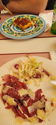 A complete tourist trap! We were there simply because we were already very hungry and needed something to eat quickly. I deliberately ordered the carpaccio because I thought "you can't go wrong with this." I ate the meat (because an animal died for it) but not the old salad. My partner unfortunately ordered the lasagna, against my recommendation because I'd read that it was probably just reheated, defective food—and that's exactly what it was. The service was "okay"—neither unfriendly nor friendly. With beer, Coke, and food, we paid €35, which is outrageous given the quality (you'd be better off going to the supermarket and getting a much better-quality meal for €22). The people at the next table were also very dissatisfied with the food. Note: The photos were taken...