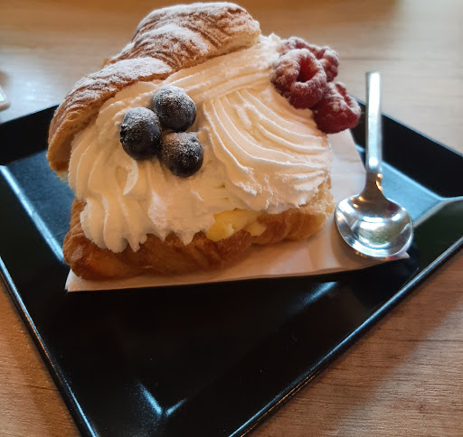 A nice bakery with a modern style, including a few tables where to get some pastries, both sweet or savory, in order to have a breakfast, eat a bit or have an aperitive with friends in the evening, possibly outdoors in the nice season. Quick service and tasty pizza slices, with several seasonings and toppings. Modest choice of beers. A...