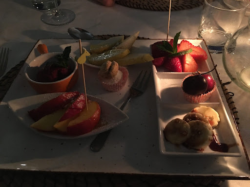 3 Dessert (€ 21): una “colorato”, fresca e buonissima Assiette di frutta fresca; un eccellente “Coccola delle delizie, cremoso al pistacchio e cioccolato bianco” ed un altrettanto ottimo dessert, La tazza Monique, un gelato al caffè con salsa allo zabaione, cioccolato e meringa.