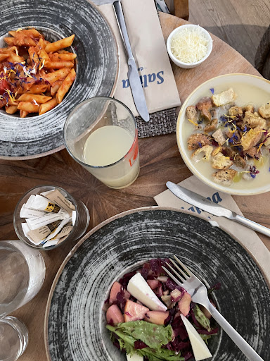 Read moreEs gab keine warmen Speisen wie auf dem Aushängeschild versprochen. Der von uns gegessene Toast war zu teuer und beinhaltete kaum gewünschten Speck trotz zusätzlichem Zahlen von 2.50€. Der Service sprach kaum unsere Sprache und hatte keine gute Organisation. Wir wurden diskriminiert indem uns kein Geld zugetraut und aus diesem hervorgehenden Mitleid das Wasser geschenkt wurde (Danke trotzdem. Nächstes mal vielleicht ein frisches Wasser). Dem Kaffe ist nichts auszusetzen. Wir mussten sehr lange auf das Essen warten, obwohl das Lokal außer uns fast leer war. Unser Nachbartisch bekam keinen gewollten Toast mehr, weil laut Servicemitarbeiter keiner mehr übrig war. Dank der oben angesprochenen fehlenden Organisation wusste der männliche Mitarbeiter nicht mehr, welcher der bestellten Kaffees ohne Koffein war und musste somit einen neuen machen. Wir haben auch beobachtet dass das Wasser an der Theke bereits abgefüllt war und somit abgestanden war und folgendermaßen auch so schmeckte. Zusammenfassend trotz guter Bewertung und einheimischen Empfehlung ist es nicht weiterzuempfehlen und das Preis-Leistungsverhältnis...