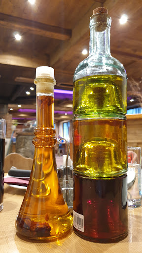 Na plus: czekadełko to 3 rodzaje małych bułeczek. Na stole 3 rodzaje oliwy z oliwek (jak przystało na Italie), nawet pikantna, no i zawsze ocet balsamiczny. Do spaghetti wiórki sera grano padana, do posypki na górę spaghetti. PYCHA!!!