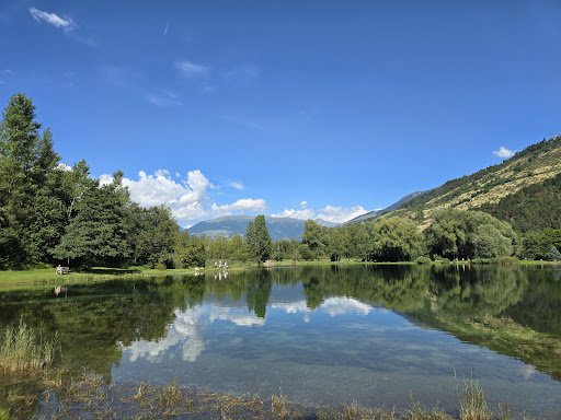 Die Lage ist traumhaft: an einem der Fischteiche von Prad am Stifserjoch, die wie ein Park angelegt sind. Die junge Kellnerin reagierte spontan und sympathisch schlagfertig auf meine Aussage "Ich bin allein." mit "Dann Komm doch rein." Auch das andere Service-Team ist jung, nett und aufmerksam. Ich hatte hausgemachte Taglioni allo Scoglio. Für Südtirol sehr anständig. Keine 5 Punkte gibt es, weil sie sehr salzig waren (ich salze eher nach). Das nächste Mal nehme ich die gegrillte Forelle, die kommt aus den Teichen. Es waren fast ausschließlich einheimische Gäste da, das spricht für sich. Und es waren viele Jugendliche und junge Erwachsene da. Auch das ist ein Plus, weil die wissen, wo man sich wohlfühlt und der Service gut ist. Nicht irritieren lassen von der Anfahrt: Die geht einige hundert Meter über den Radweg. Und die Abzweigung von Prad kommend nach Ende des Gewerbegebiets übersieht man leicht, nur ein kleines Schild auf der linken Seite mit der Hausnummer und das Bestecksymbol weisen auf den Weg hin. Die gegrillte Forelle war beim nächsten Besuch super: auf den Punkt gegart, leicht glasig, die Gräten lösten sich ohne Rückstände. Dritter Besuch: Schnitzel Wiener Art keine Empfehlung! Das war ein Fertigschnitzel, wahrscheinlich sogar in der Frittöse gegart (siehe Bild). Die Brennessel-Knödel waren dagegen hervorragend. Supergünstig und gut ist der Hauswein, der halb soviel kostet wie...