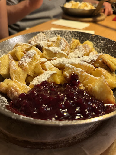 Read moreWir hatten keinen Platz reserviert und haben gerade noch einen Vierertisch erhalten. Es waren draussen alle Tische besetzt und drinnen war es halbvoll. Die Angestellten hatten Mühe, dem Ansturm gerecht zu werden. Die ältere Dame flitze hin und her, man hatte fast Mitleid… dabei hatte sie aber alles im Blick und war noch freundlich. Der junge Mann, der das Essen brachte, war ebenfalls freundlich. Das Essen: qualitativ top. Richtig lecker, tolle Speisekarte. Von Fleischliebhabern zu Vegetariern - man findet etwas. Auf vegane Speisen habe ich nicht geachtet… die Vorspeise, Gazpacho: toll! Gut abgeschmeckt, eine essbare Blüte schwamm darin - superlecker! Die hausgemachten Ravioli - ein Gedicht…die Krönung war der Kaiserschmarren… endlich mal selbst gemacht und kein Fertigprodukt…ein Muss wenn man dorthin geht. Aber Achtung: eine Portion reicht für drei Personen….-) Preis Leistung passt gut, hier müssen sie hingehen wenn sie in der Nähe...
