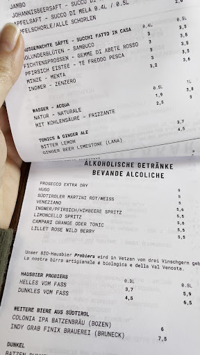Read moreSi raggiunge attraverso una passeggiata (molto tranquilla) lungo il lago di S. Valentino. Si trova proprio sul lago, al posto di una villa antica abbattuta è stato eretto un edificio basso, dalle linee MOLTO moderne , totalmente in contrasto con la vecchia struttura. Non è un giudizio, solo una constatazione. Sicuramente la struttura moderna è pratica e luminosa e permette una bellissima vista del lago praticamente da ogni parte. La cucina non è quella tradizionale (scordatevi la wienerschnitzel o i wurstel) bensì una cucina elaborata al sapore di montagna. Molto buona e particolare. Io, che di solito non prendo mai le lasagne, non ho potuto fare a meno di provare la lasagna ai profumi di bosco, con i finferli. Ottima, come la carne salada che si scioglieva in bocca e la zuppa di cipolla. Non abbiamo provato i secondi ma erano estremamente interessanti e visto il livello alto dei primi/antipasti sicuramente ottimi. Le due torte prese non erano eccezionali. Prezzi non bassi (in 5 con un primo a testa + bevanda, e due caffè+dolce 153 euro) ma almeno ottimo pranzo. Servizio cortese,...